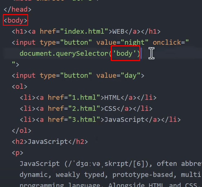 [생활코딩 JavaScript] 12강. 자바스크립트로 HTML, CSS 동적으로 만들기(주간모드, 야간모드) 본문