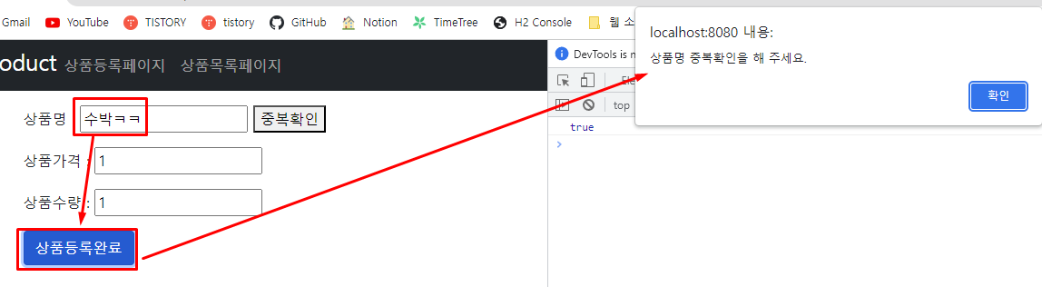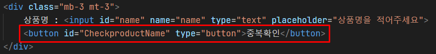 - 상품명을 적고 중복확인 버튼으로 중복 체크를 한다.