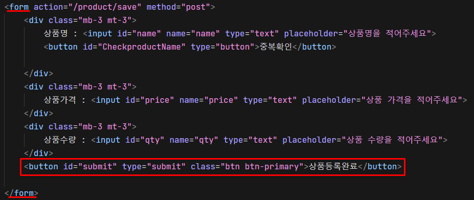<button id="submit" type="submit" class="btn btn-primary">상품등록완료</button>