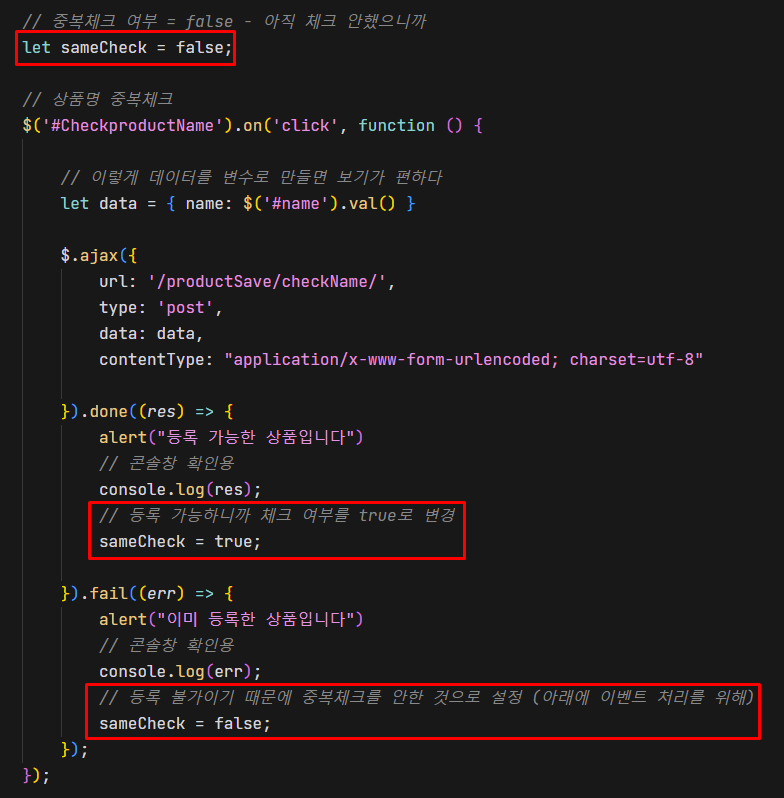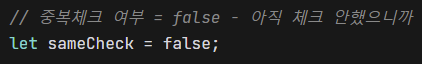 이전에 중복체크 할 때 선언했던 변수 sameCheck를 사용한다😃