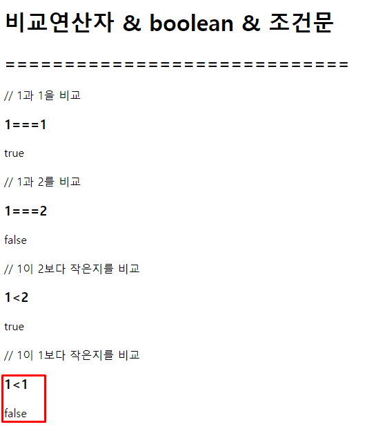 <h1>비교연산자 & boolean & 조건문</h1>