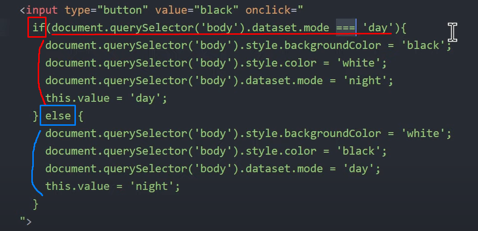 if 조건에 'day' 모드이면 if {} 중괄호 안의 코드가 실행되고,