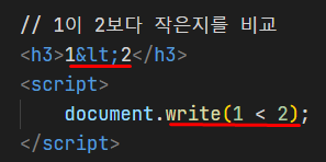 HTML에서는 꺾쇠가 문법 때문에 연산자로 인식하지 않아서 다르게 써 주어야 한다.