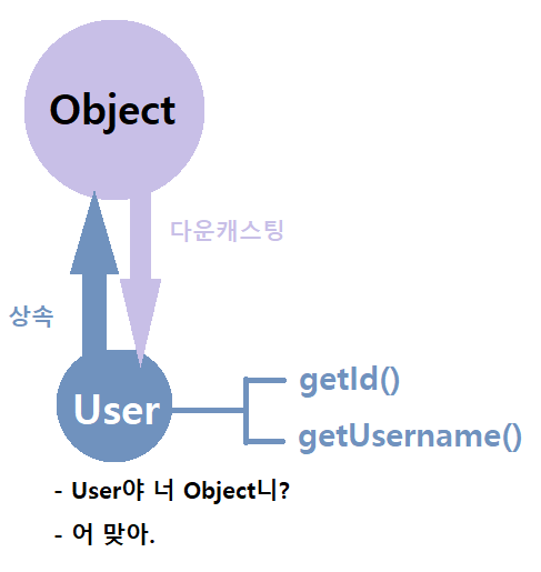 그러니 이렇게 같은 User로 맞춰주게끔 다운캐스팅을 하는 것이다!!