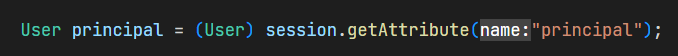 그리고 session에서 "principal"이라는 이름으로 저장된 속성을 가져와서