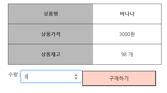 재고 수량 내에서 구매할 수 있게 하고, 0개나 음수는 구매 못하게 자바스크립트로 막아주어야 하고,