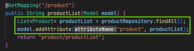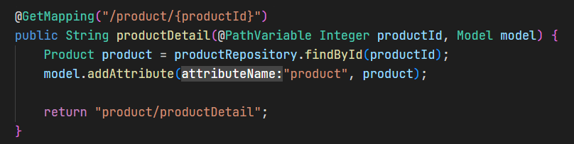 model 객체에 "orderedProduct" 라는 이름으로 담아주었다.