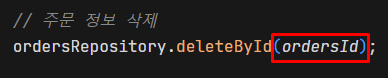 매개변수로 받은 ordersId와 같은 정보의 컬럼인 orders 테이블을 삭제📦📦