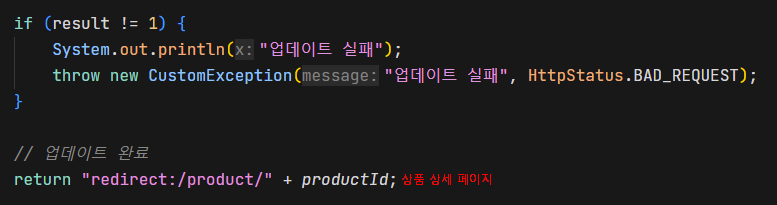 throw new CustomException("업데이트 실패", HttpStatus.BAD_REQUEST);