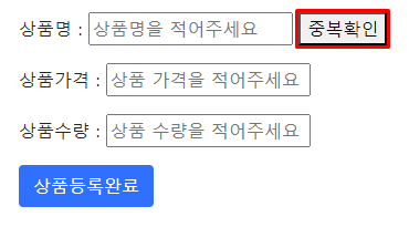 상품명을 적으면 중복체크를 하게 만드는 Ajax 요청을 만들어 보자.