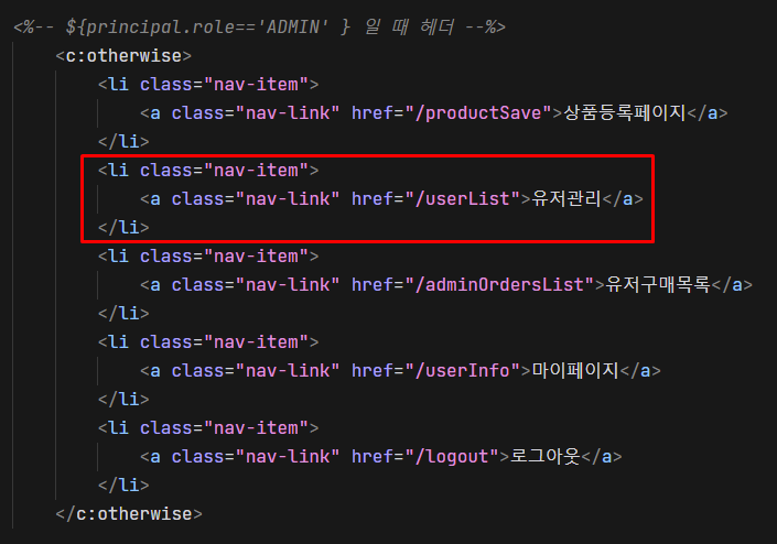 ADMIN 로그인 헤더에 유저관리 메뉴를 추가해 준다!