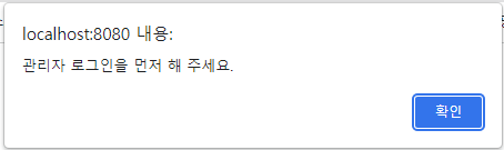 혹시나 세션이 시간이 지나 삭제 되었다면 관리자 로그인을 먼저 해달라는 alert 창이 뜬다.