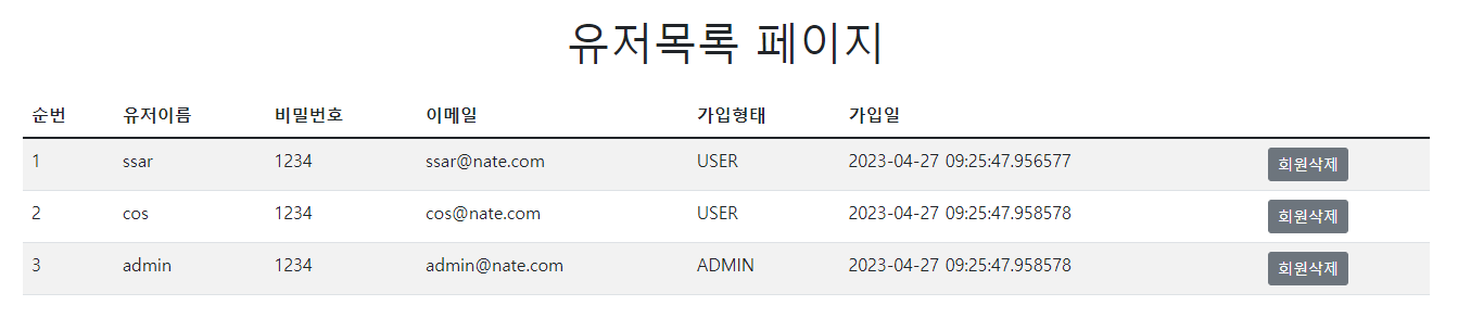 유저 목록 페이는 관리자만 접근 가능하도록 해 주었고,