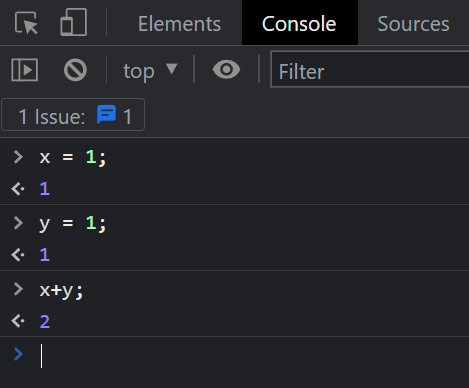 x를 1, y를 1로 선언했다. 그렇다면 x + y 는??